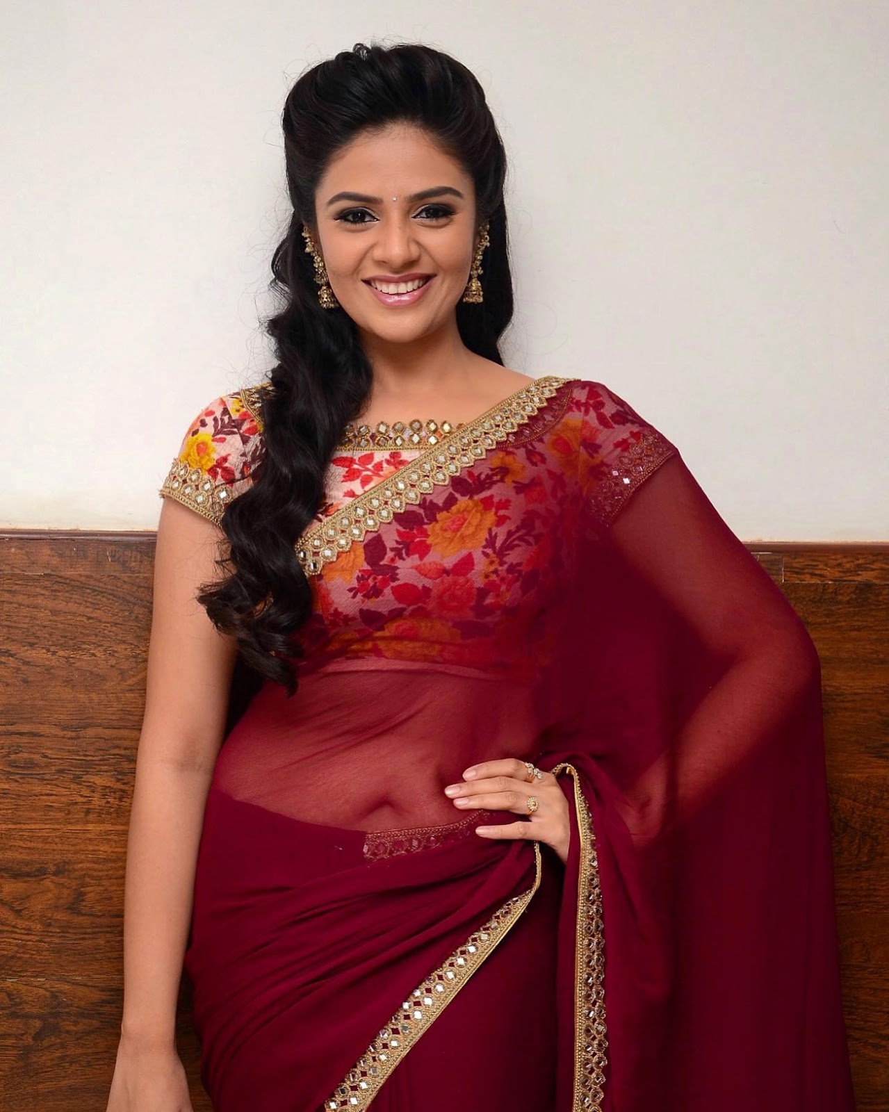 Sreemukhi Hot Navel Show Pics In Red Transparent Saree, See Divas Hot Navel Throw Back Pics Collection!